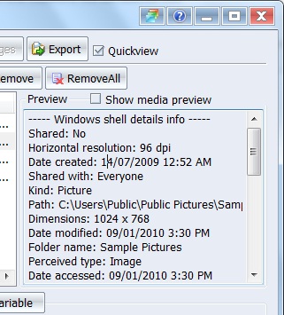 - QuickView feature - preview thumbnail of photo, and shell details info for all files.