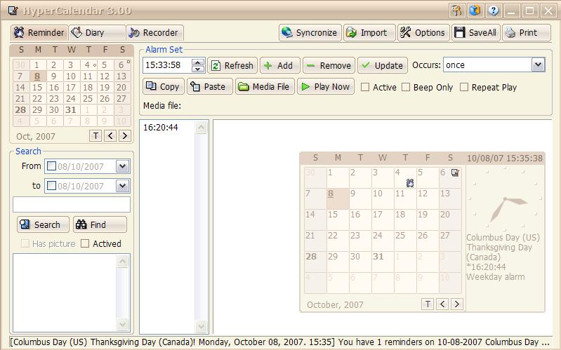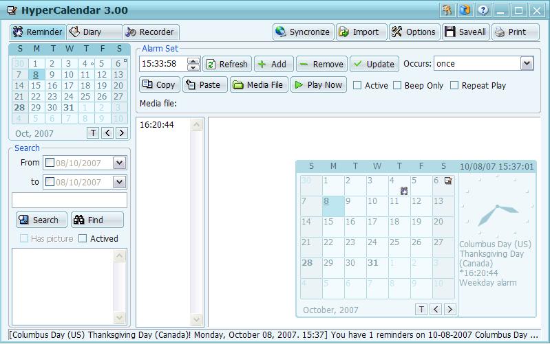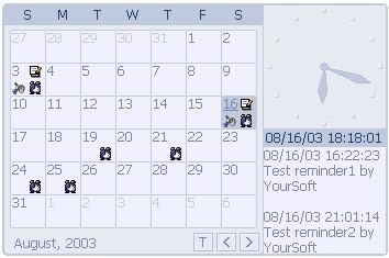 The reminder supports playing varies of media files such as mp3, wmv, avi, asf, mpeg, flash and etc., when it pops up, the selected media will be played automatically. It also supports recurrence features, you can specify a reminder to recur everyday, every weekday, every weekend day, to repeat every week, month, two months, or every year. You can copy a reminder from one day to another as well.